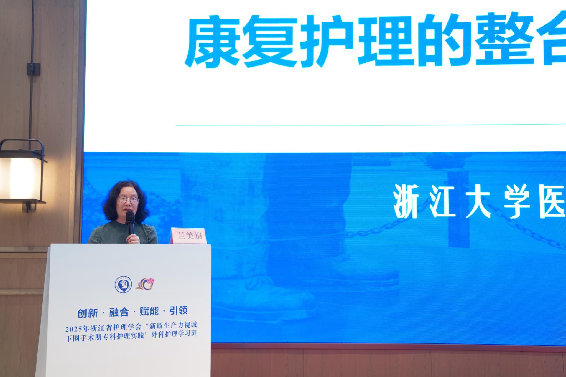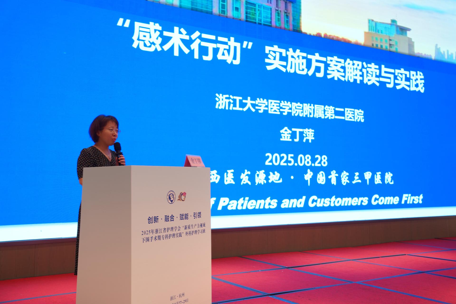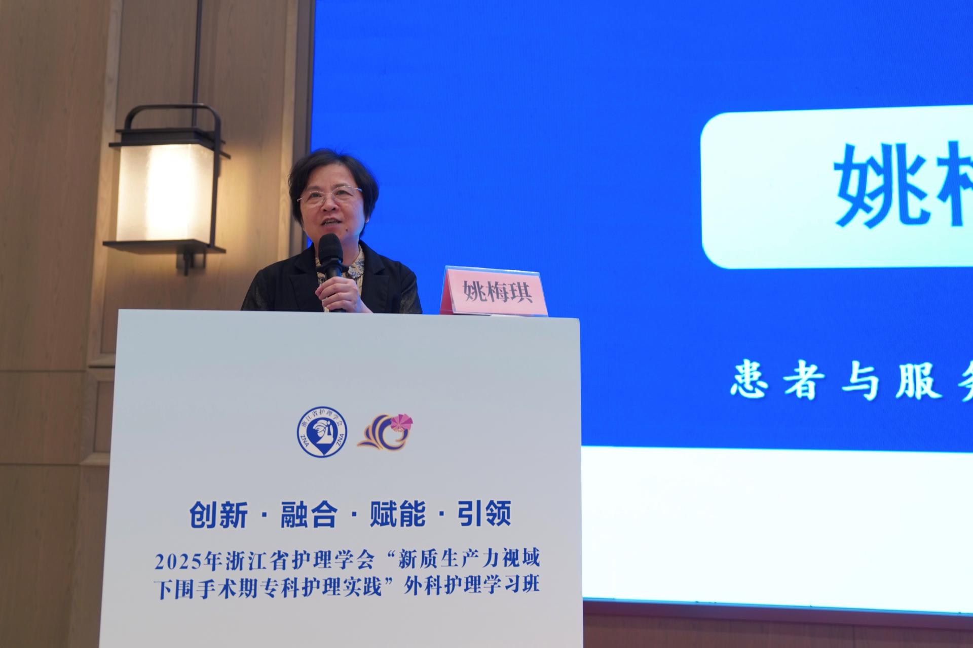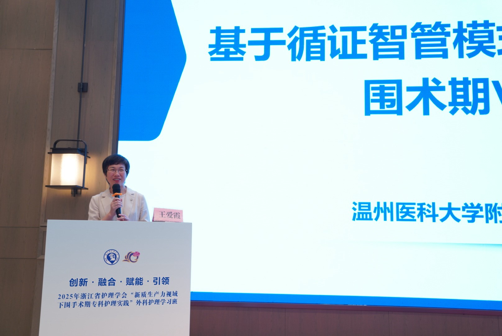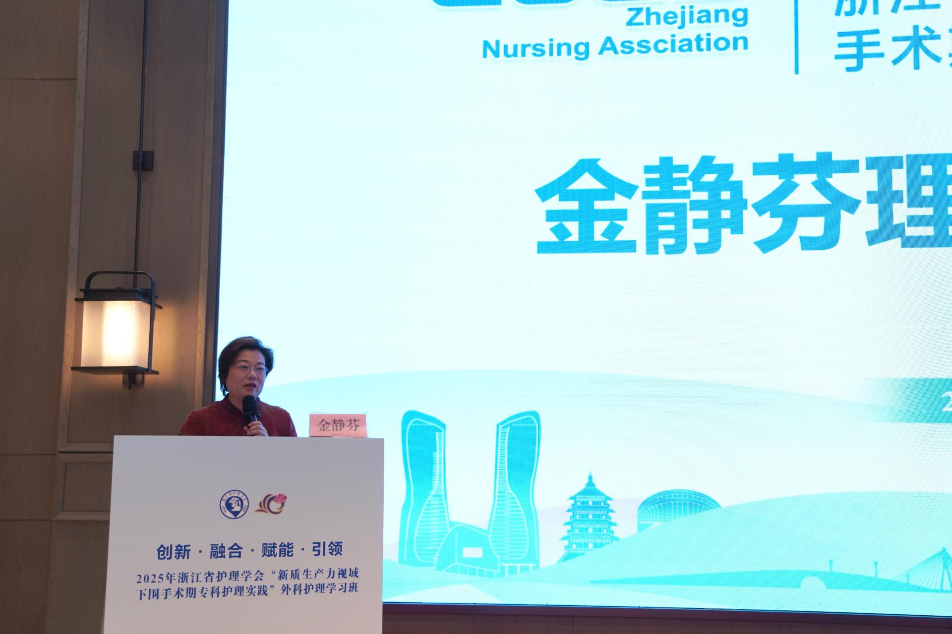 本次学习班聚焦外科护理领域中危重患者管理、加速康复、人工智能应用及外科研究等前沿热点问题及临床需求,通过多学科交叉、多视角碰撞,激发新思路,构建护理新体系。浙江省护理学会金静芬理事长带来的《外科疾病早期风险预警与护理应对策略》一课拉开了本次会议专题报告的帷幕,她系统阐述了外科疾病前瞻性护理管理的路径与方法,并结合真实临床案例,深入剖析护理应对策略中的关键细节与实操要点,这对临床护理工作具有重要的指导意义和实践价值。