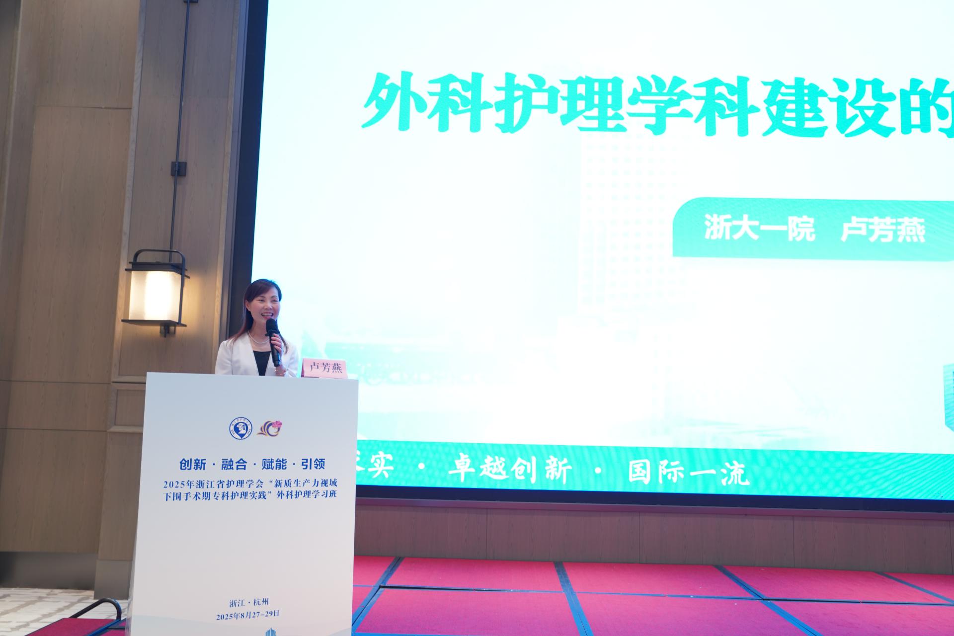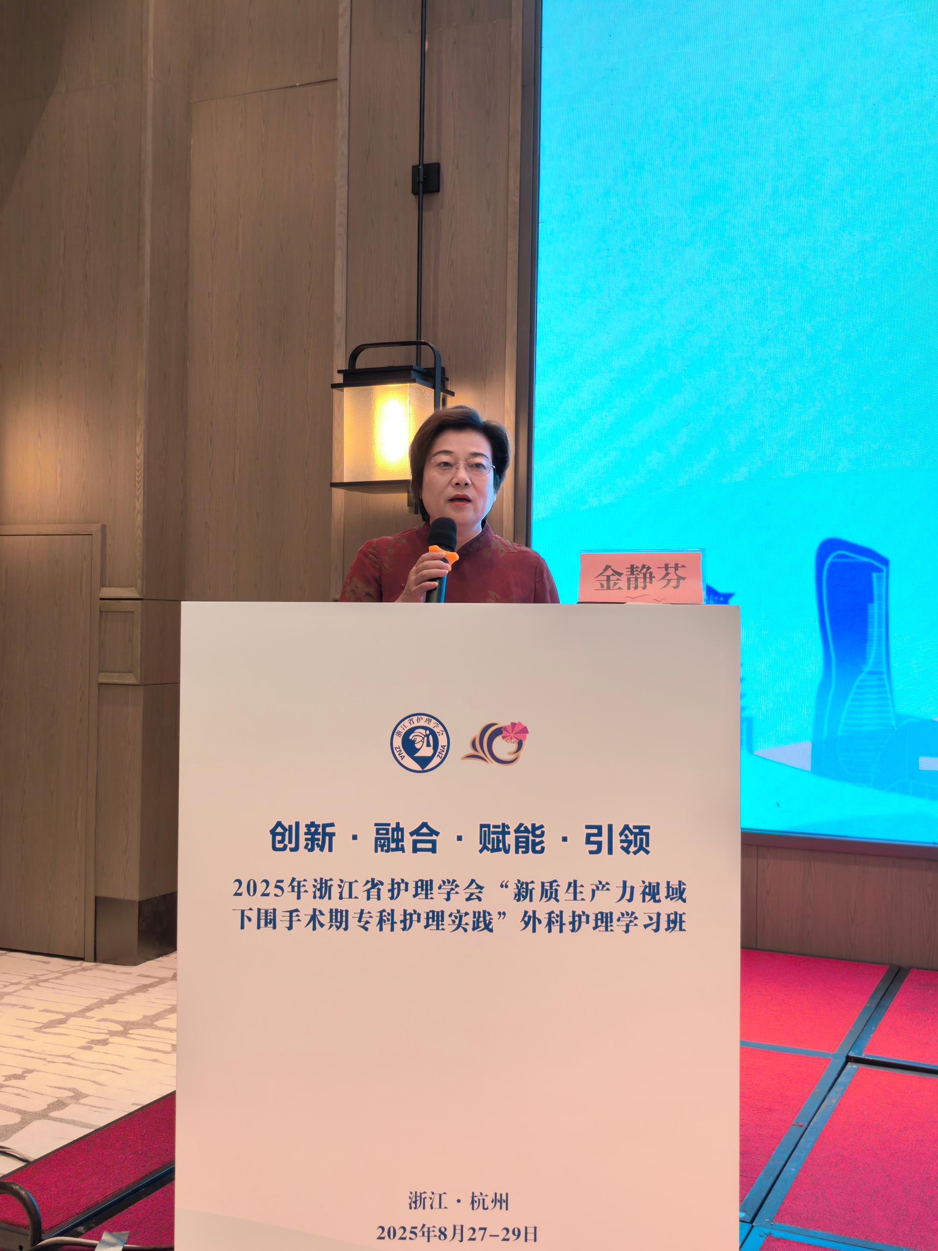 夏意未央,秋声已至。由浙江省护理学会外科专业委员会主办的2025年“新质生产力视域下围手术期专科护理实践”外科护理学习班于8月27日至29日在杭州顺利举办。本次学习班以“新质生产力”为指引,以“创新、融合、赋能、引领”为主题,聚焦外科护理新视野、创新和护理赋能,共享前沿新知、聚力多元融合、共塑发展未来。学习班特邀省内知名专家开展专题授课,并设置论文交流与科普作品展示环节,旨在多维度提升外科护理人员的专业素养与创新能力。来自省内外230余名护理同仁齐聚一堂,共享这场智慧交融的学术盛会。