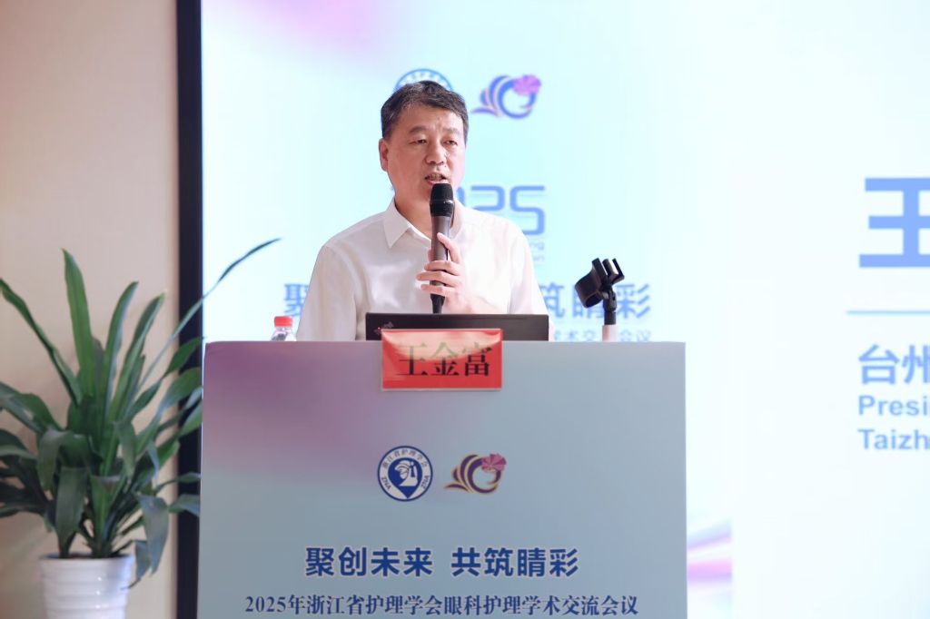 王金富院长代表台州市立医院全体职工,向莅临会议的各位专家及护理同仁致以最诚挚的欢迎。他指出,承办此次学术盛会既是台州市立医院的荣幸,更是推动台州地区眼科护理事业发展的宝贵契机。我们将全力做好各项保障工作,期待与会代表们在深耕学术交流、碰撞智慧火花的同时,走进台州、感知台州,领略这座城市的独特人文魅力与奋进活力。