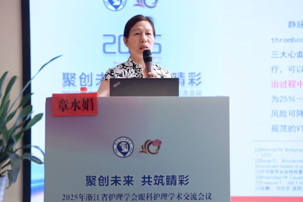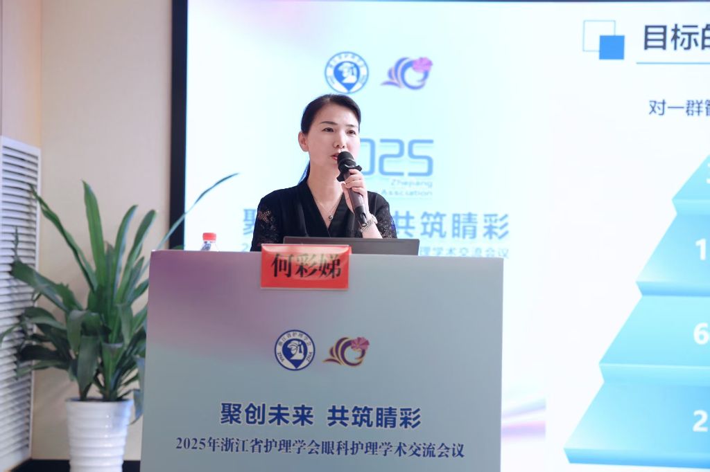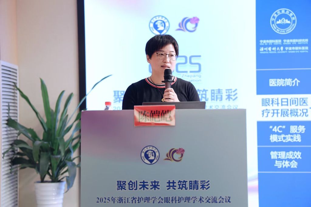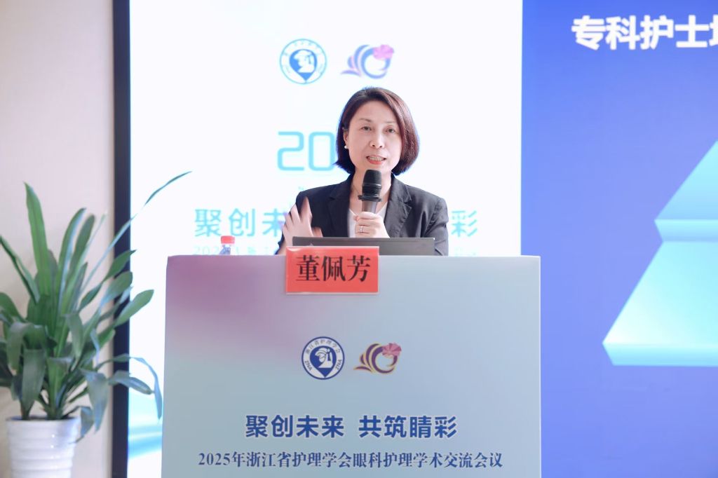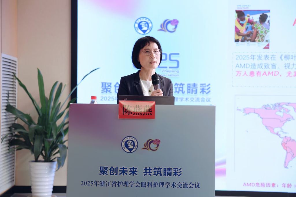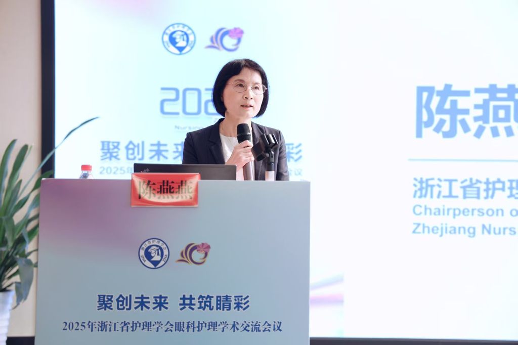 陈燕燕主任委员在致辞中深情回顾了浙江眼科护理发展从专科人才梯队建设、慢病个案管理到智慧化护理创新模式。她殷切期望,通过搭建高质量的学术交流平台,广纳前沿智慧、碰撞思想火花,将理论成果转化为实践动能,为构建智慧化、全周期的浙江省眼科护理服务体系夯基垒台、立柱架梁。