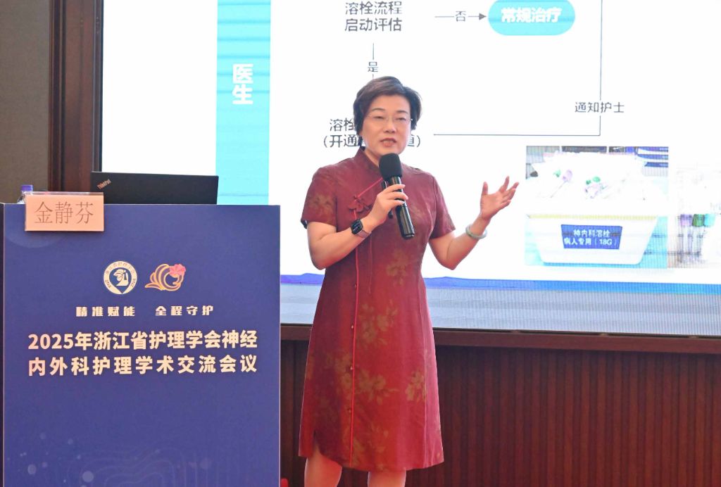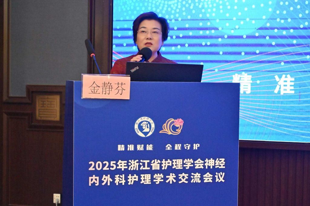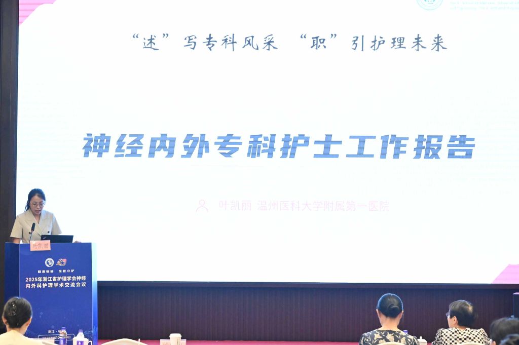 浙江省护理学会金静芬理事长出席会议开幕式并致辞。金理事长指出,神经内外科作为临床风险最高、技术要求最精尖的专科之一,其护理工作既承载着守护生命中枢的重任,也直接决定着患者的功能康复与生活质量。党的二十大将“健康中国”置于战略优先地位,而神经疾病诊疗技术的日新月异,更对护理工作提出了全新命题。我们既要实现角色突破,从传统操作执行者转型为多学科协作的决策参与者;更要精进专业能力,在神经重症监护、早期康复干预等领域锻造不可替代的核心价值;同时需推动创新转化,让循证实践与科研成果真正成为提升患者生存质量的利器。她强调,期待大家激荡思想火花、共解临床难题,缔结协作网络、共绘发展蓝图,让今日之所学,成为点燃明日浙江神经护理事业的燎原之火!
