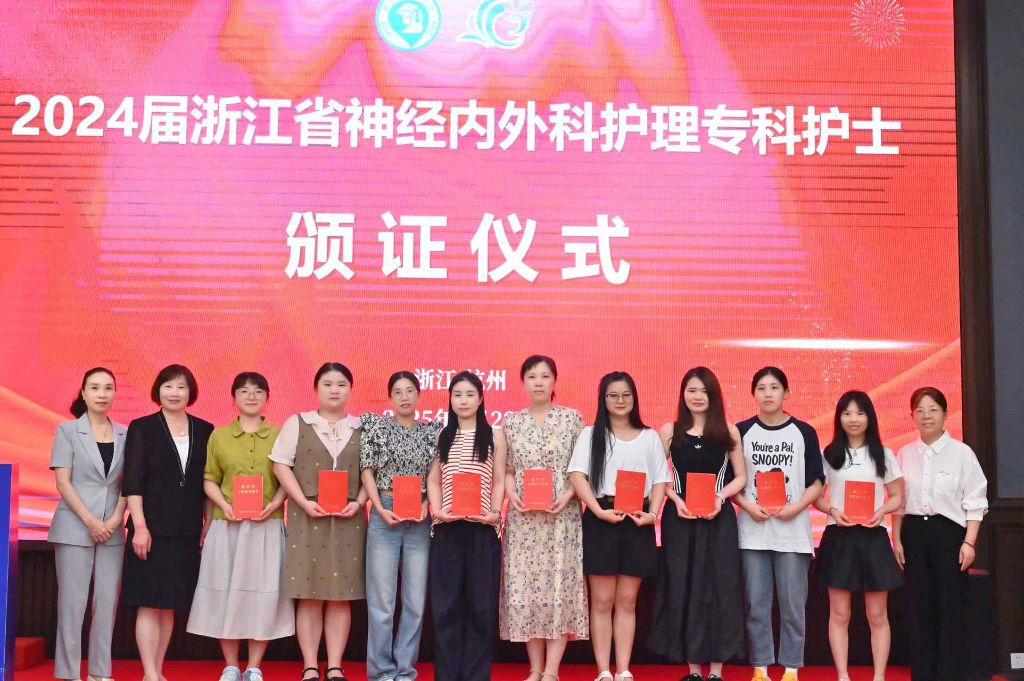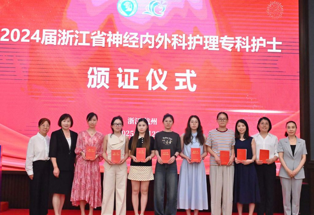 由浙江省卫健委主办的浙江省神经内外护理专科护士培训自2021年至今,已累计培养280名专科护士,为浙江省乃至全国的神经内外科护理事业输送了大量专业人才。2024届共有68名学员顺利结业,他们来自省内外66家单位,其中省外学员10名,分别来自新疆、内蒙古、贵州、湖北、广西、福建、江西等多个省份。这份证书不仅是对大家专业能力和不懈付出的充分肯定,更是一份沉甸甸的使命与期许。