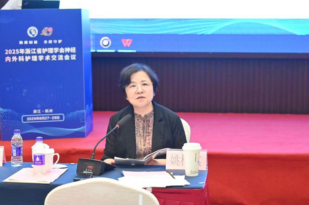 浙江省护理学会神经内外科护理专委会主任委员、浙江大学医学院附属第二医院护理部封秀琴常务副主任致欢迎辞。封主委希望通过形式多样、内容丰富的学术交流提升神经内外护理学科水平,培养一批高、精、尖的神经内外护理专科护士队伍,持续深耕神经专科护理领域,不断提升专业水平,为推动临床实践进步与护理质量提升贡献更多力量。