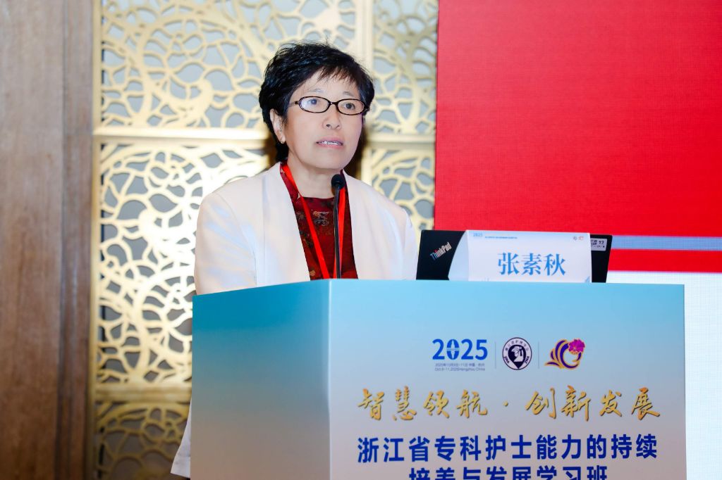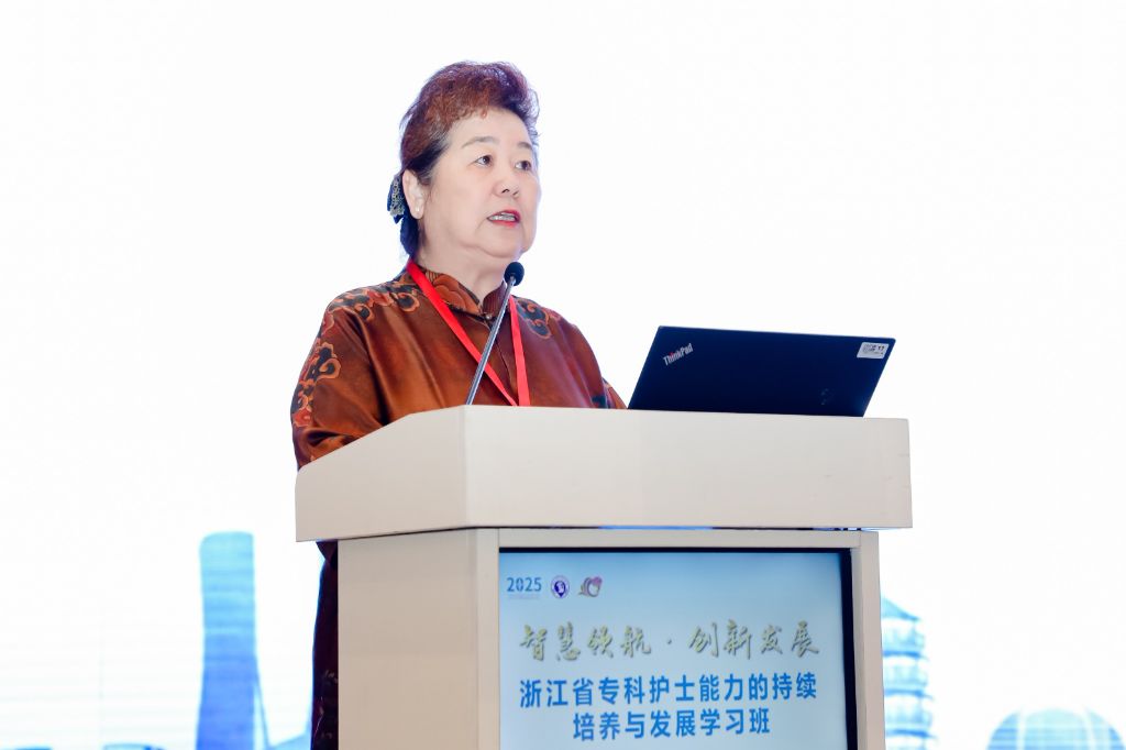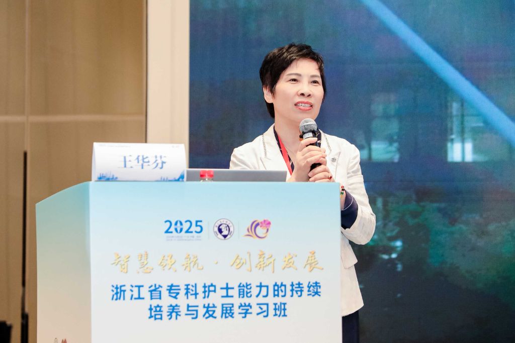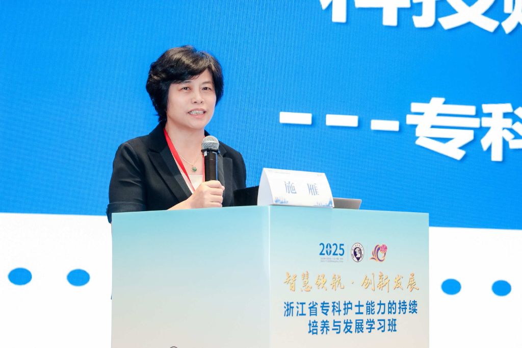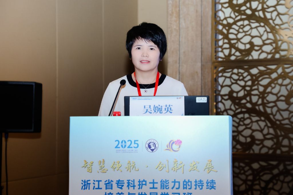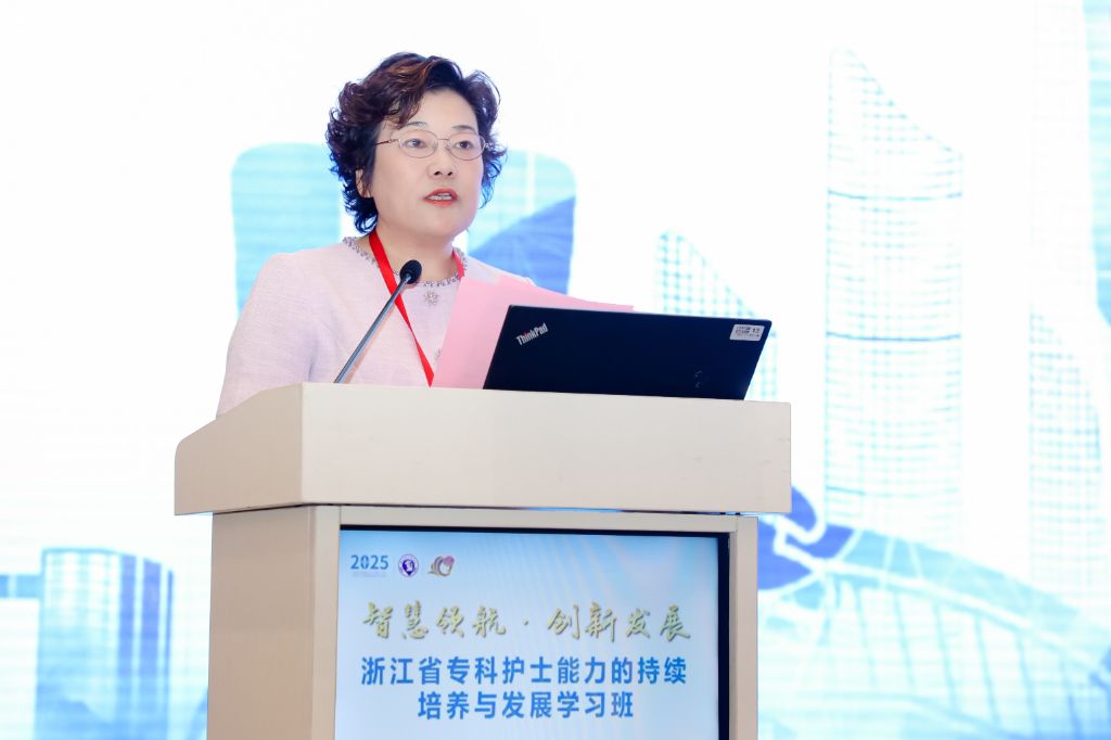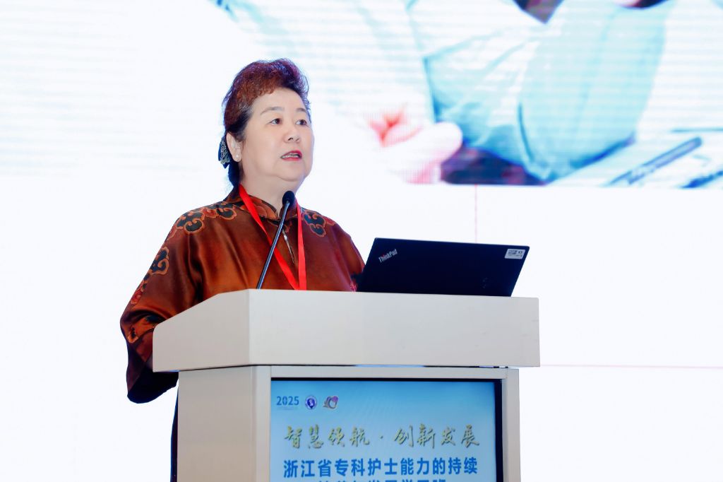 中华护理学会理事长吴欣娟出席开幕式并致辞,吴理事长向全国广大护理工作者致以崇高敬意。她指出,在健康中国战略背景下,专科护士是推动护理专业纵深发展的关键力量。近年来,浙江省在专科护士的培养与管理方面积累了宝贵经验,也为全国提供了有益借鉴。希望与会同仁们深入探讨与分享,共同为我国专科护理事业的持续发展注入强劲动力!