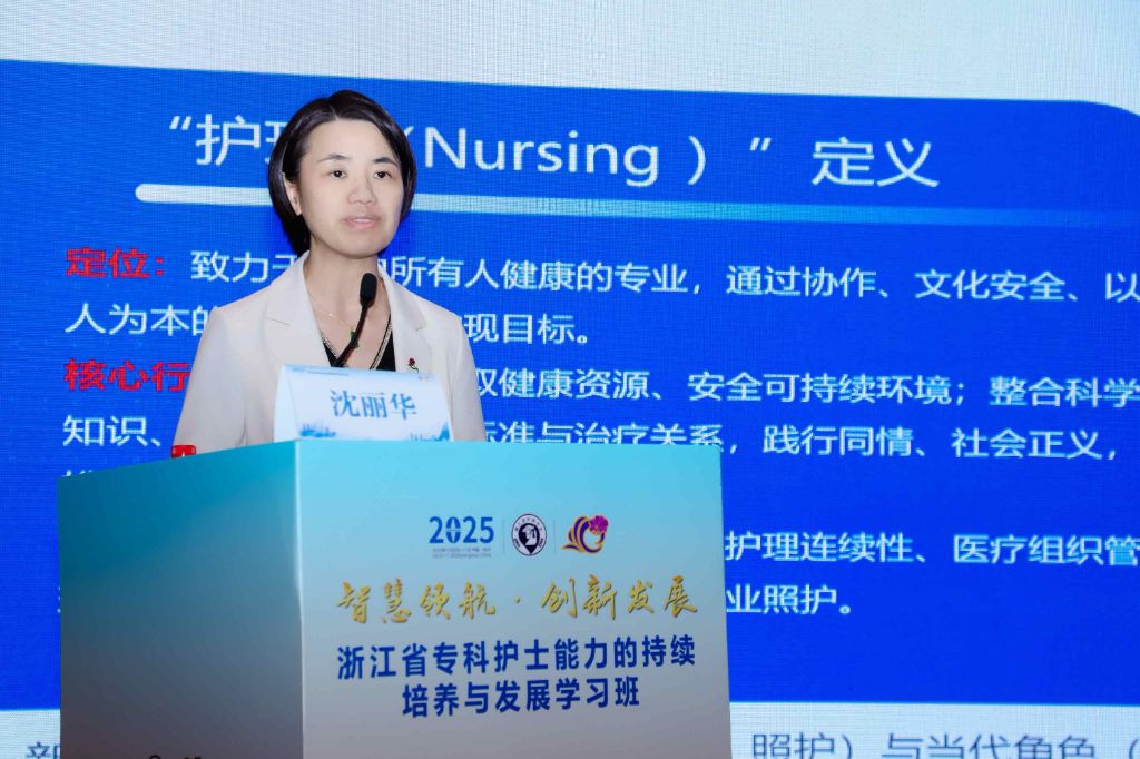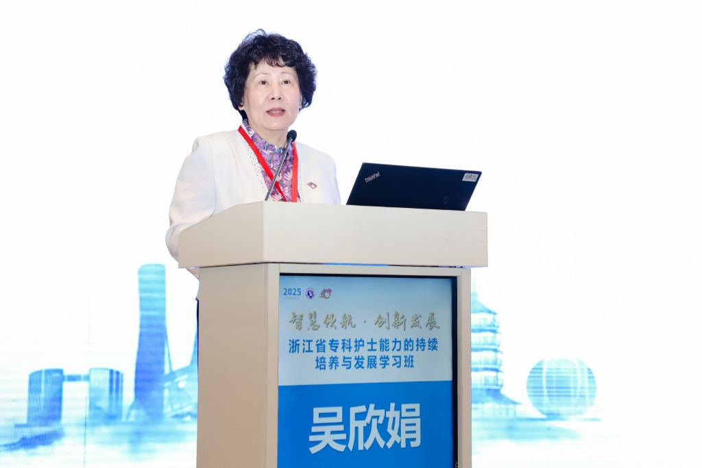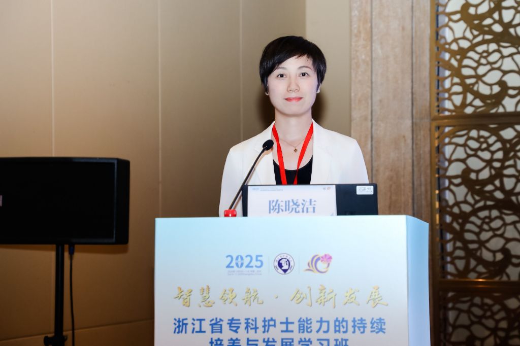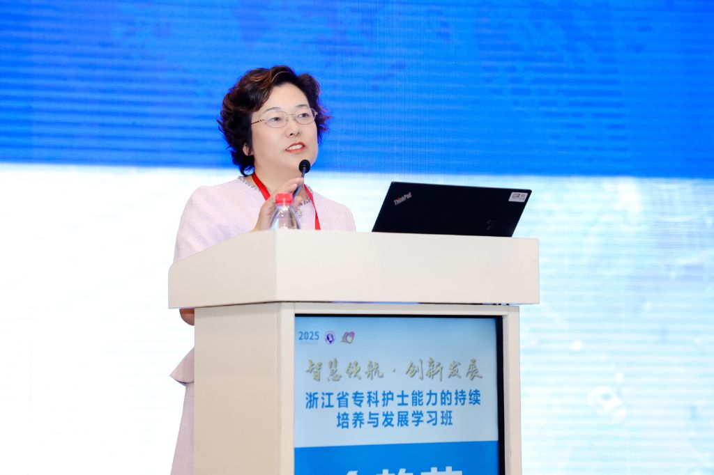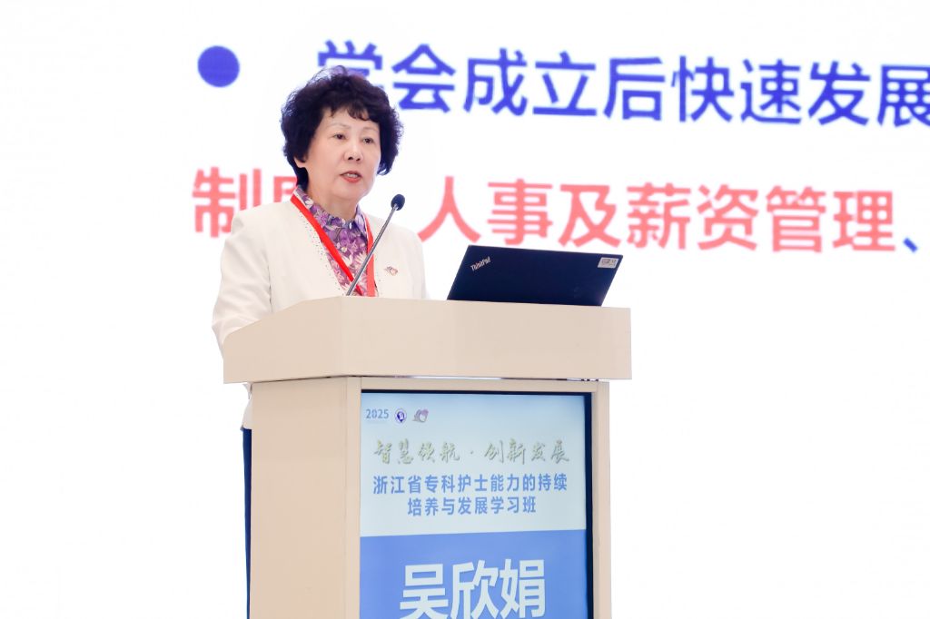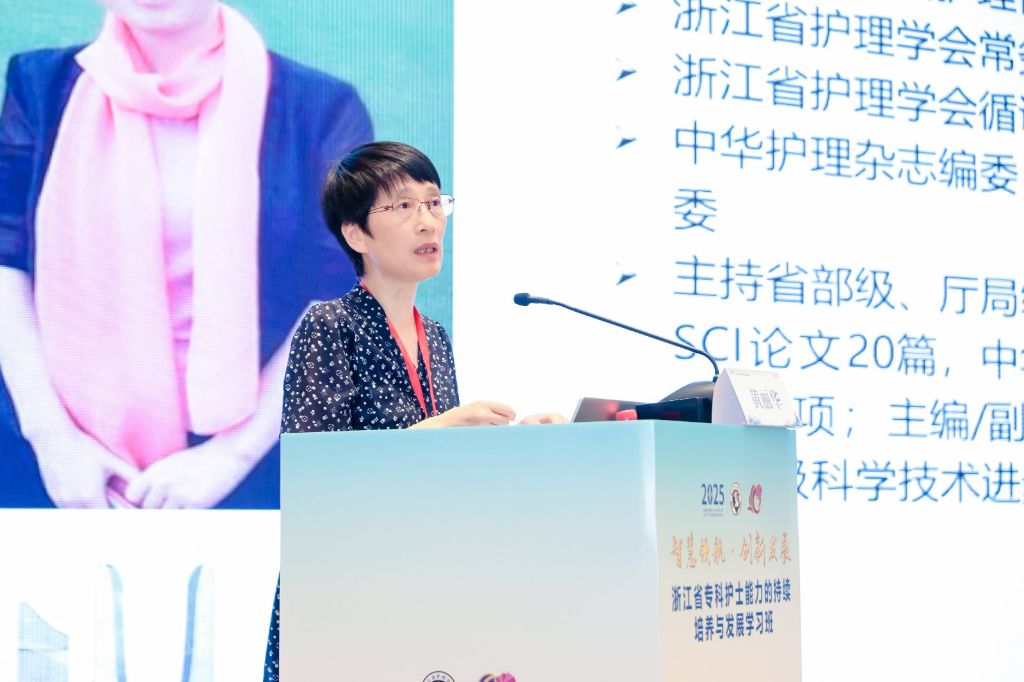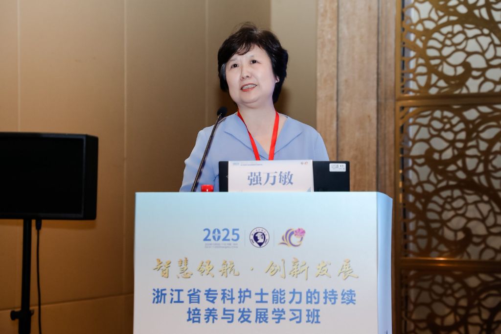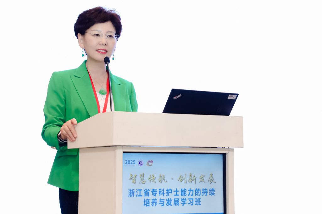 中华护理学会理事长吴欣娟出席开幕式并致辞,吴理事长向全国广大护理工作者致以崇高敬意。她指出,在健康中国战略背景下,专科护士是推动护理专业纵深发展的关键力量。近年来,浙江省在专科护士的培养与管理方面积累了宝贵经验,也为全国提供了有益借鉴。希望与会同仁们深入探讨与分享,共同为我国专科护理事业的持续发展注入强劲动力!
