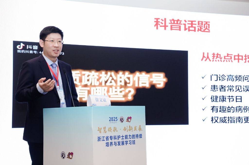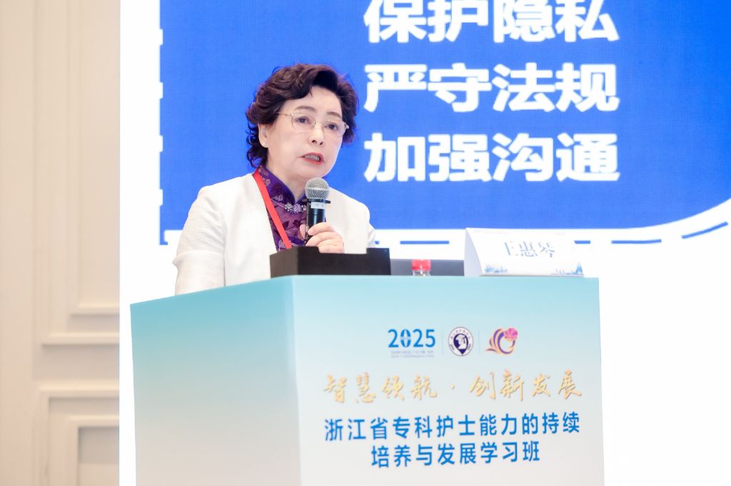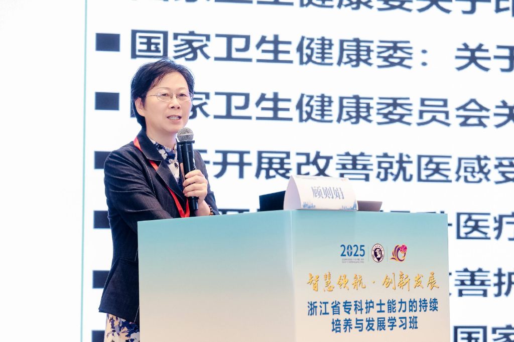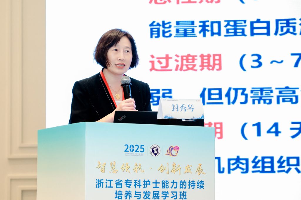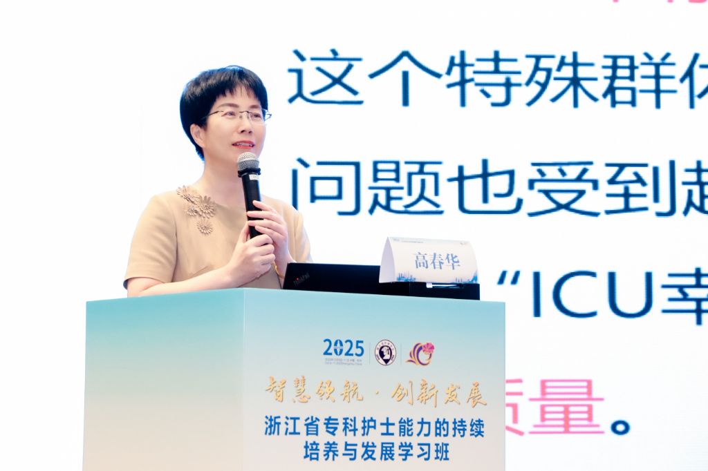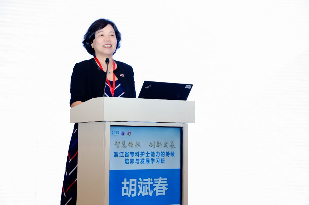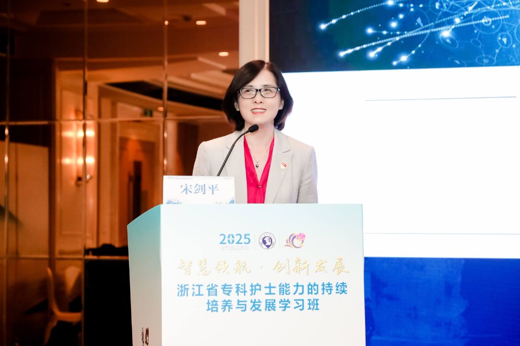 中华护理学会理事长吴欣娟出席开幕式并致辞,吴理事长向全国广大护理工作者致以崇高敬意。她指出,在健康中国战略背景下,专科护士是推动护理专业纵深发展的关键力量。近年来,浙江省在专科护士的培养与管理方面积累了宝贵经验,也为全国提供了有益借鉴。希望与会同仁们深入探讨与分享,共同为我国专科护理事业的持续发展注入强劲动力!