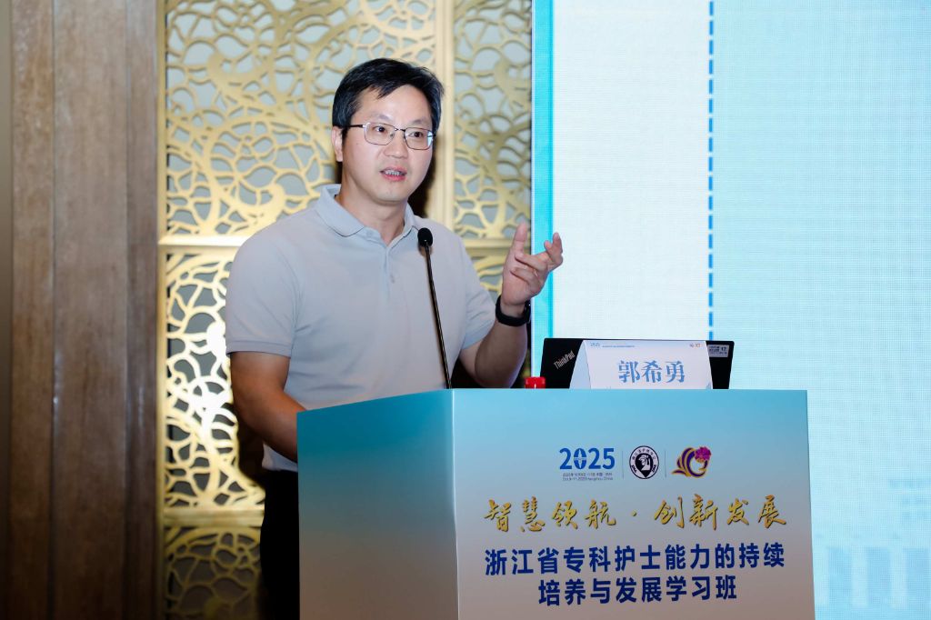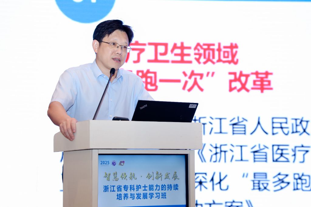 浙江省医疗服务管理评价中心党委书记、主任顾华参加开幕式并致辞,他充分肯定了我省专科护士队伍建设取得的成效,并强调能力提升是一个持续动态的过程。同时呼吁各级医疗机构加大对专科护士能力提升的投入及培养环境的持续优化,鼓励专科护士精进技术、勇于担当,不断提升专科能力和水平,为我省医疗护理事业的发展添砖加瓦!
