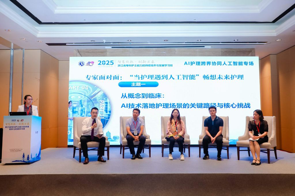 当护理科学与人工智能深度碰撞,将激荡出怎样的创新火花?AI护理跨界协同人工智能专场特邀复旦大学护理学院袁长蓉教授、中国科学院宁波材料与工程研究所刘宜伟研究员、复旦大学脑智研究院魏依娜研究员、浙江大学计算机创新技术研究院相鹏教授、浙江大学计算机科学与技术学院王海帅研究员等专家聚焦前沿科技与护理实践的融合,直击护理AI行业热点。课程内容涉及患者旅程AI导航的实践创新、可穿戴设备与智能感知技术在健康监测中的最新应用、脑机接口在脑卒中康复评估中的突破等等。更为精彩的是,专场特设了 “当护理遇到人工智能”专家面对面环节,多位跨领域专家同台交流,清晰解锁AI赋能护理的创新场景与应用路径,共同畅想未来护理的无限可能。