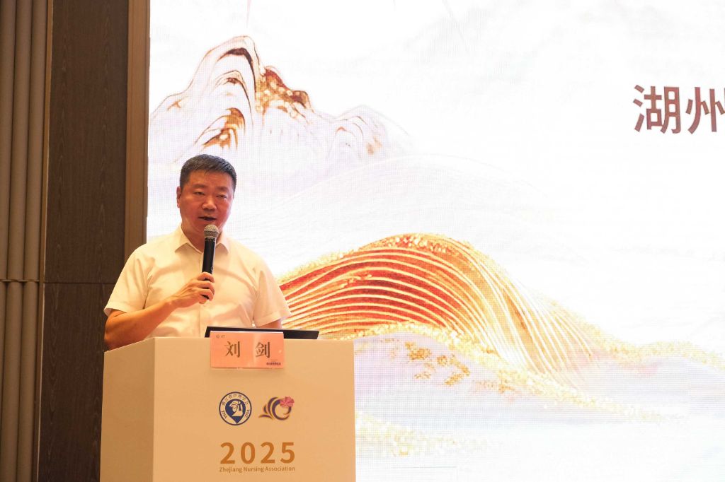 湖州市中医院刘剑书记参加开幕式并致辞,他首先向与会专家和代表们表示热烈欢迎。刘书记指出,慢性病已成为影响人民群众健康和生活质量的主要疾病,应对这一挑战不仅需要医疗技术进步,更需要推动护理理念、模式和方法的创新。中医护理在慢病防控中具有独特优势,近几年来湖州市中医院将中医护理人才培养、技术创新、护理学科建设置于重要战略位置,视其为践行健康中国战略、推动医院高质量发展的关键引擎。他希望广大中医护理同仁坚持守正创新、拓展服务领域、全面提升中医护理服务能力。