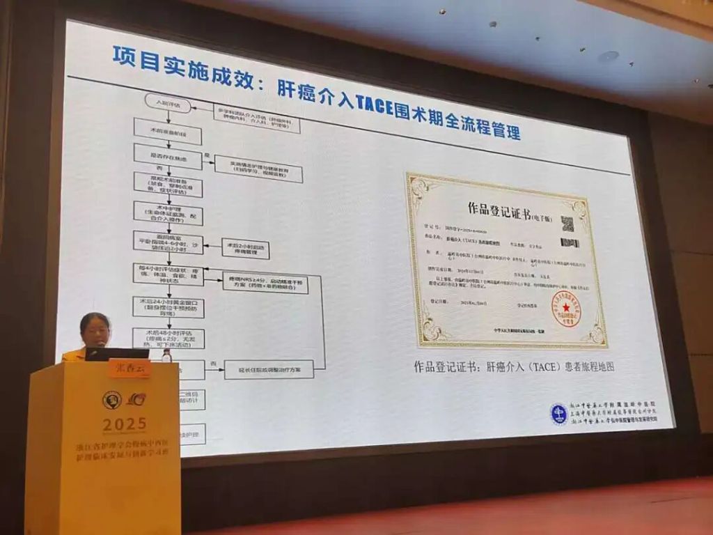温岭市中医院护理部主任张香云从科研的角度展示了一种高效、流畅、温暖、同质化的肝癌TACE患者全流程管理路径,为优化患者护理服务提供了新途径。