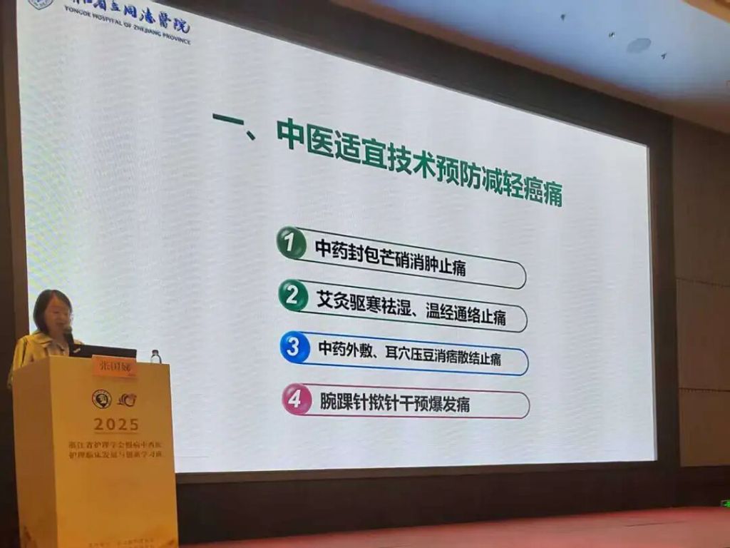 浙江省立同德医院肿瘤科护士长张国娣介绍了如何运用中医护理适宜技术有效优化癌痛治疗,并结合人文心理关怀,提高患者的生存质量和治疗信心。