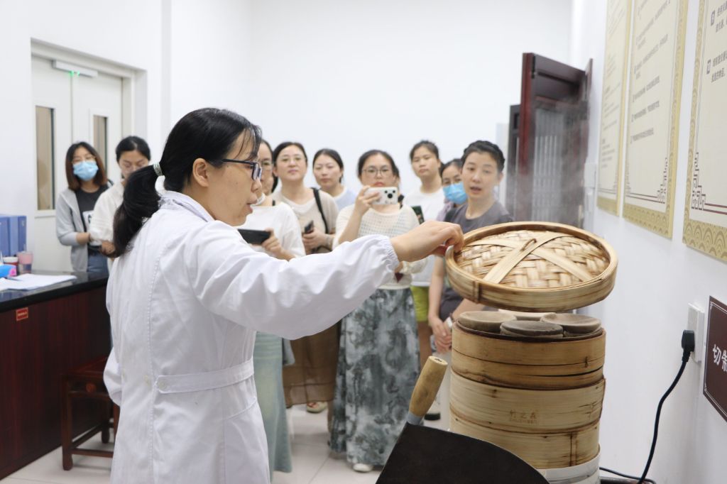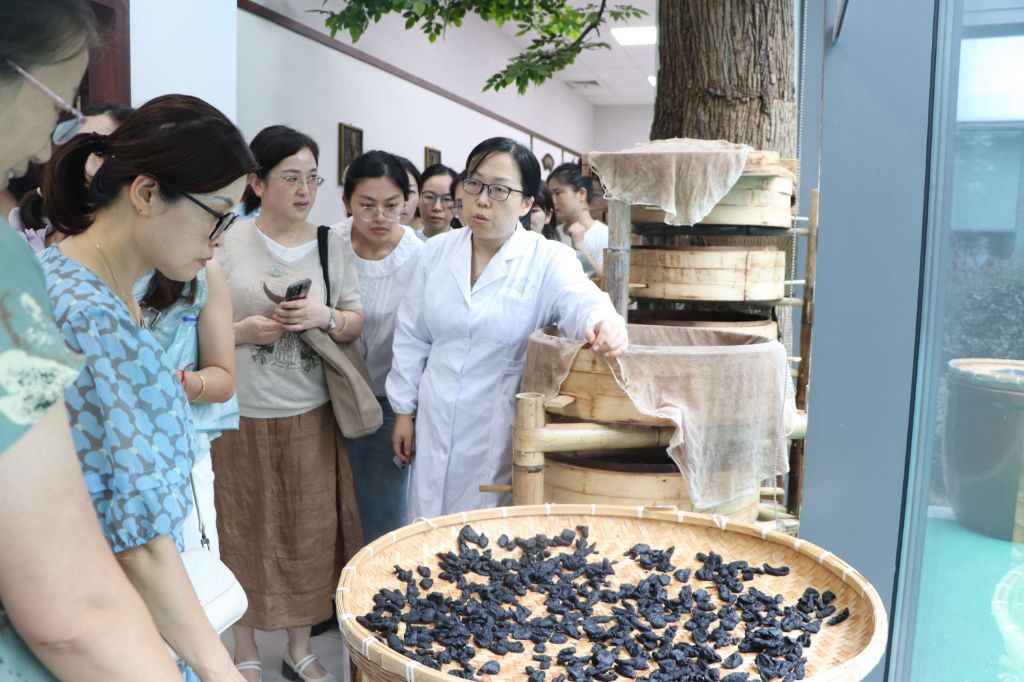 会议安排学员参观湖州市中医院中药房“前店后坊”展示区。展区陈列着四季茶饮、本草咖啡伴侣、中药面膜、玫瑰纯露、本草香囊等特色产品,令人目不暇接。学员们近距离观察了传统炮制工具使用及药材加工过程,体会中医药文化“水火既济”的智慧传承。