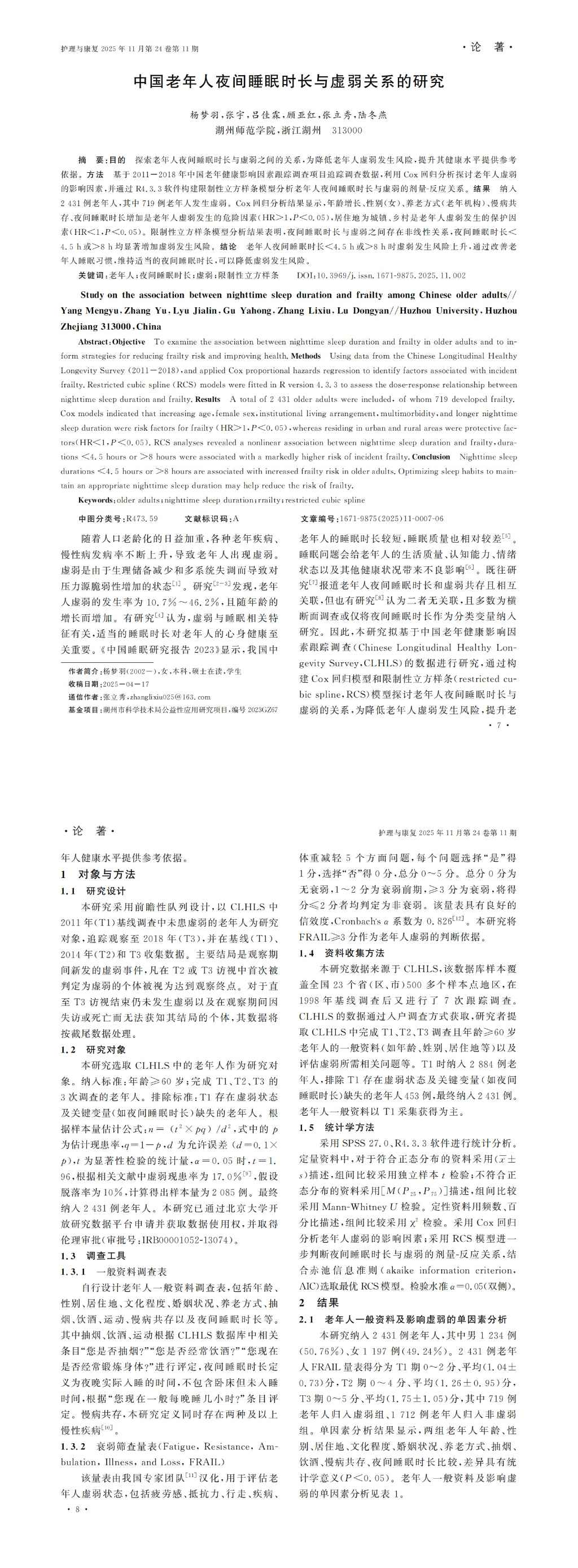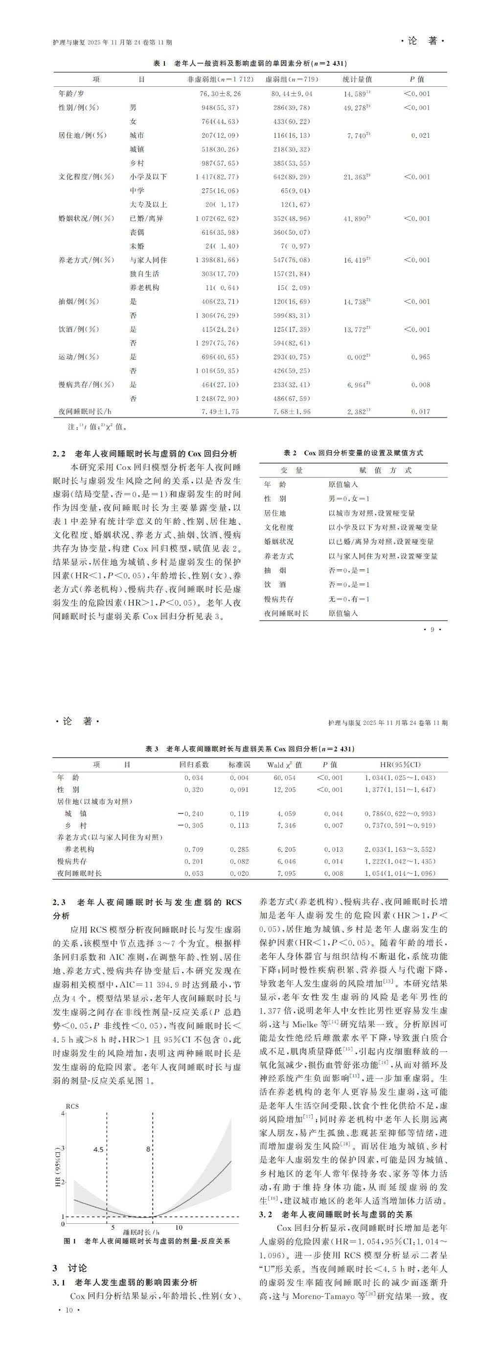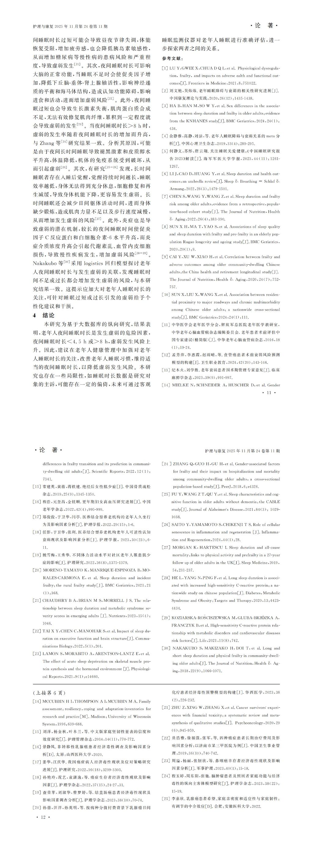 2025年第11期-中国老年人夜间睡眠时长与虚弱关系的研究