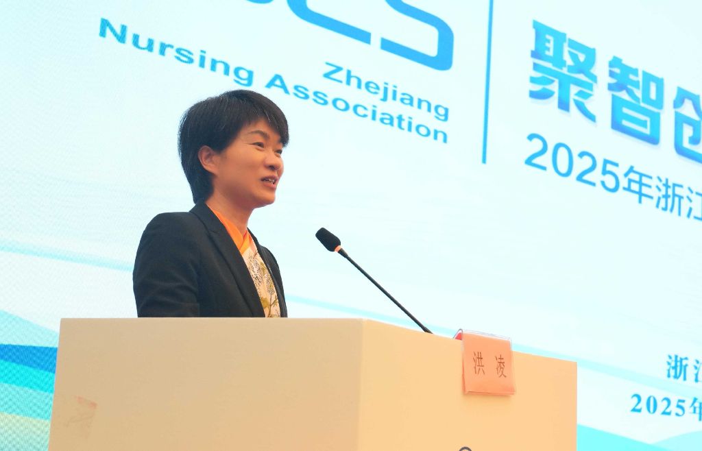 ▲浙江省护理学会门诊护理专业委员会主任委员洪凌致辞