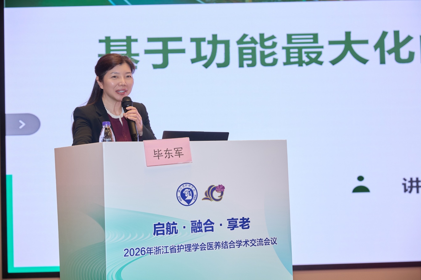 浙江省护理学会医养结合专业委员会主任委员、台州市康复医院副院长毕东军分享《从养老到享老:基于功能最大化的老年健康服务体系的构建与实践》,践行“从养老到享老” 理念升级,以老年医学科建设为纲,推动老年健康服务从 “被动养老”向“主动享老”升级,构建更专业、连续、有温度的老年健康服务体系。