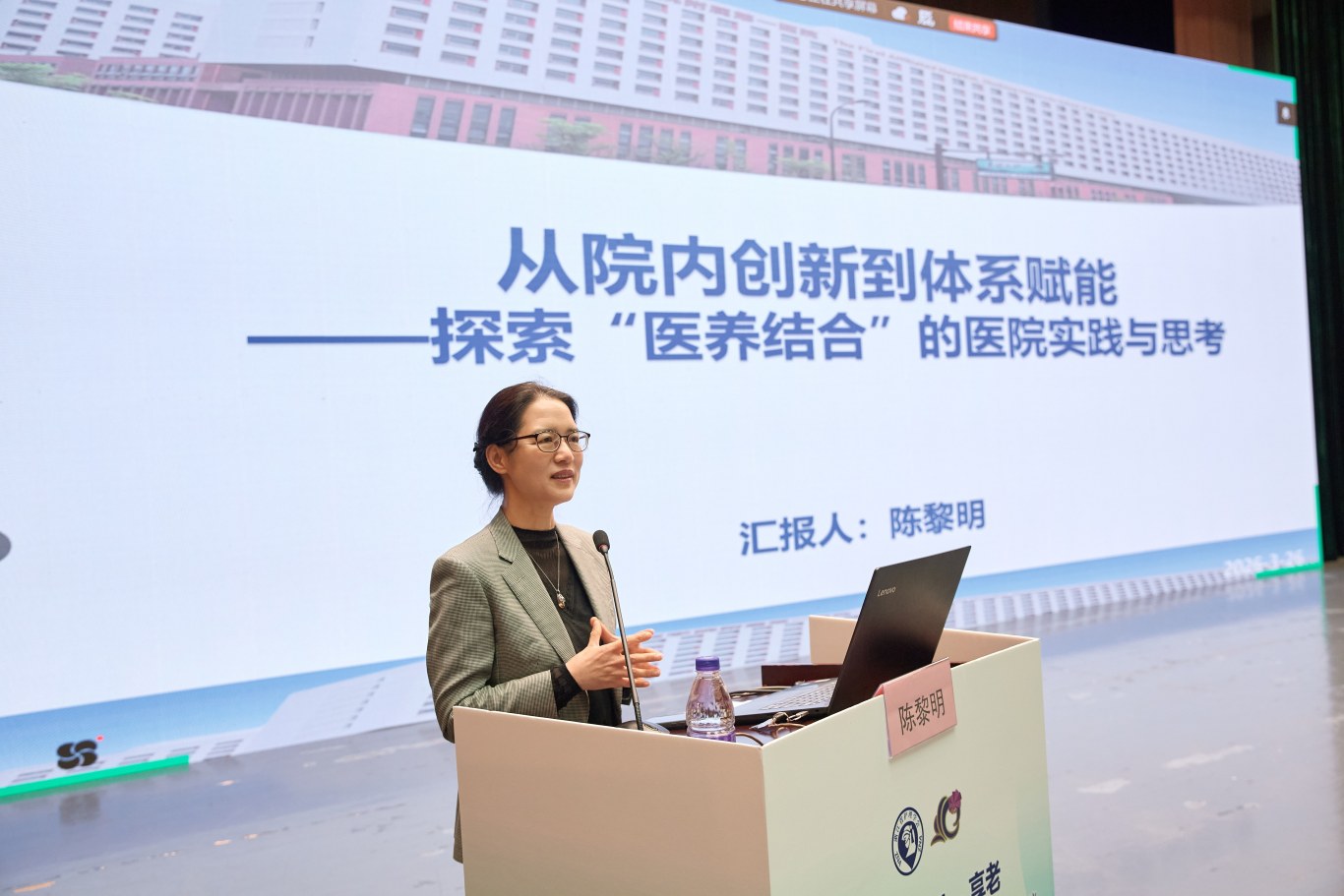 浙江省护理学会医养结合专业委员会副主委、浙江大学医学院附属第一医院护理部副主任陈黎明分享了《从院内创新到体系赋能——探索“医养结合”的医院实践与思考》,以良渚文化智慧切入,提出“医疗为基、养老为核”的核心理念,着力破解资源错配、服务断链、系统分割、人才失衡四大难题。她强调以数字化赋能、质量管控与医院平台支撑,这是打通医养融合的关键环节。